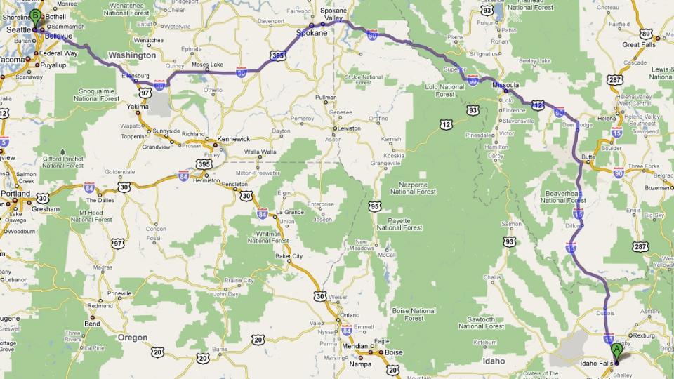 this is the route taking 15 North up to Montana and the heading over on 90 West back through the northern part of Idaho into Washington…
